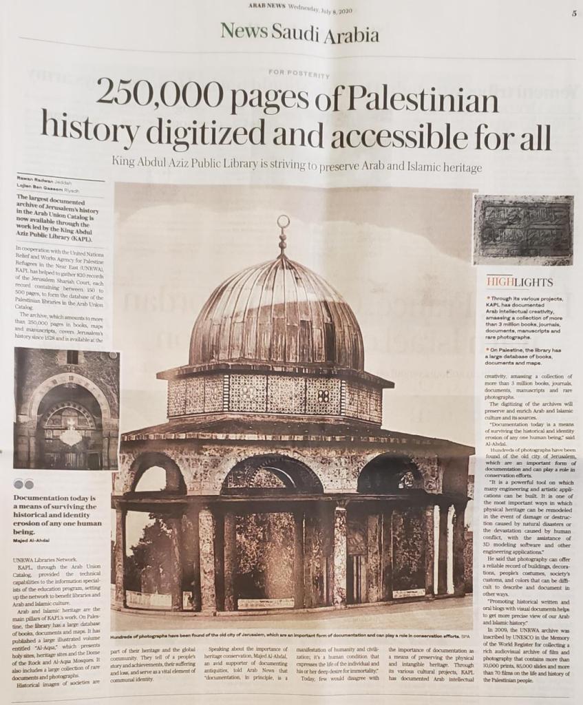 “The archive, which amounts to more than 250,000 pages in books, maps and manuscripts covers Jerusalem’s history since 1528. All online at UNRWA (United Nations Relief and Works Agency), for Palestine Refugees in the Near East Libraries Network”.