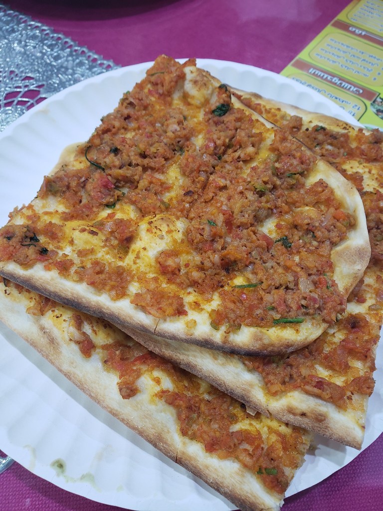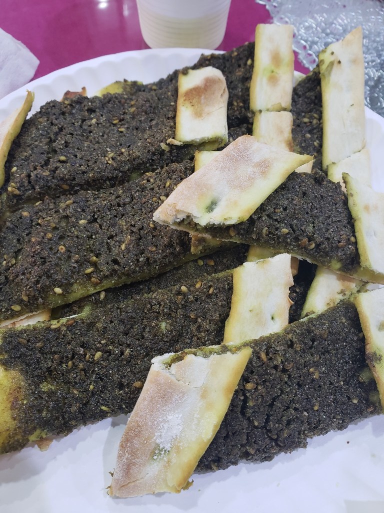 Food: Finding places to eat was a bit tough. You will find many street food vendors in the neighborhoods, more than you will around The Haram area. In fact it is hard to find a good food place except for the hotel cafes and restaurants. There are a few small places like a Dunkin Donuts hole-in-the-wall and some small coffee shops (take out only) near the mosque. It is worth going out and scoping the neighborhood for more choices. We found a great little place out in the neighborhood streets that served shish kabobs, Za’atar, meat pies, etc., and those prices you will find affordable. We ate at Istanbul Shish Kabob and here the chef is making our Za’atar bread, which one of my kids adores.