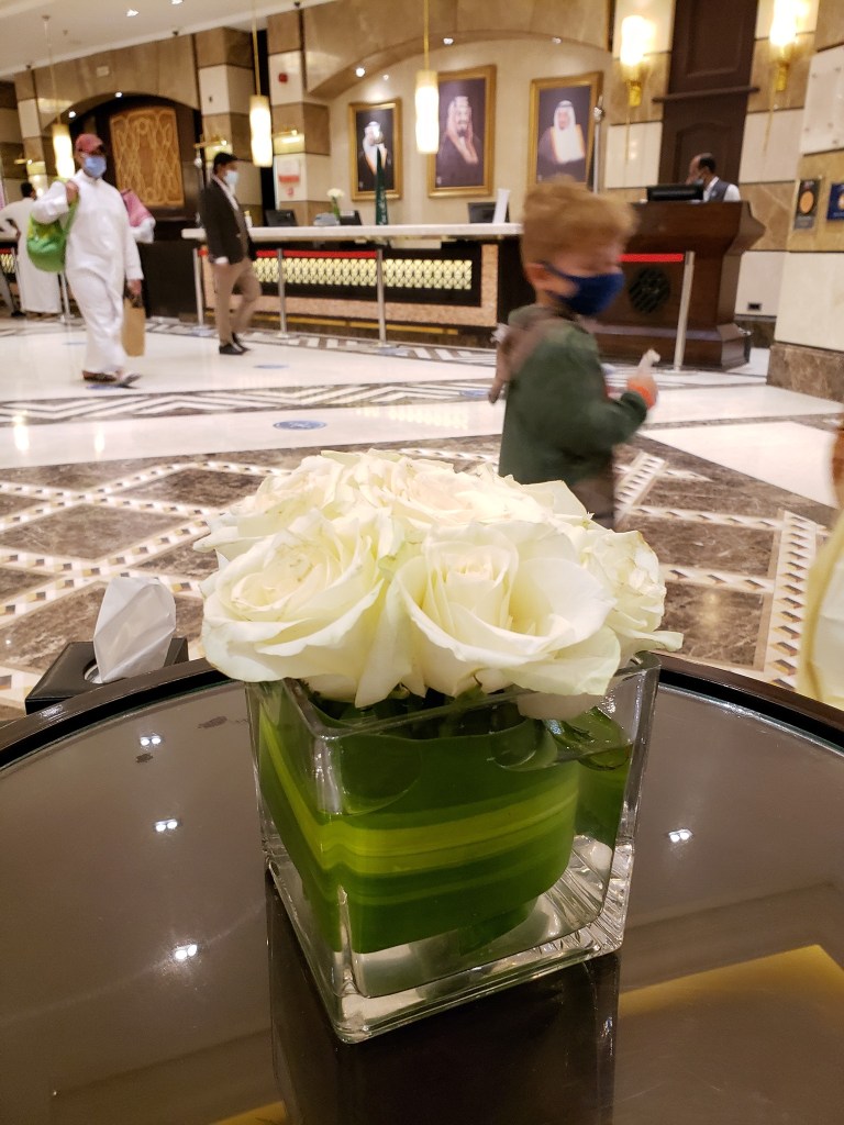 Hotel Experience: We stayed at the Pullman Zamzam Madina with a city view, which we booked about 3 weeks before. It can be hard to get The Haram view, so book in advance. The beds and pillows were comfortable, and service was good. They have a cafe area and dining room. The food was ok/good, meaning the main dishes were alright, salad bar a bit skimpy, but desserts were great! We paid for 2 adults, and kids ate for free. The only real complaint we had, which can’t be avoided here, is the smoky smell of the air even with the A/C on. Many people smoke, so it gets recirculated throughout the hotel. We noticed a definite improvement in the air quality after the weekend. So, if you want cleaner air, book your stay for Sunday through Thurs, or find a small apartment for rent that caters to non-smokers.
