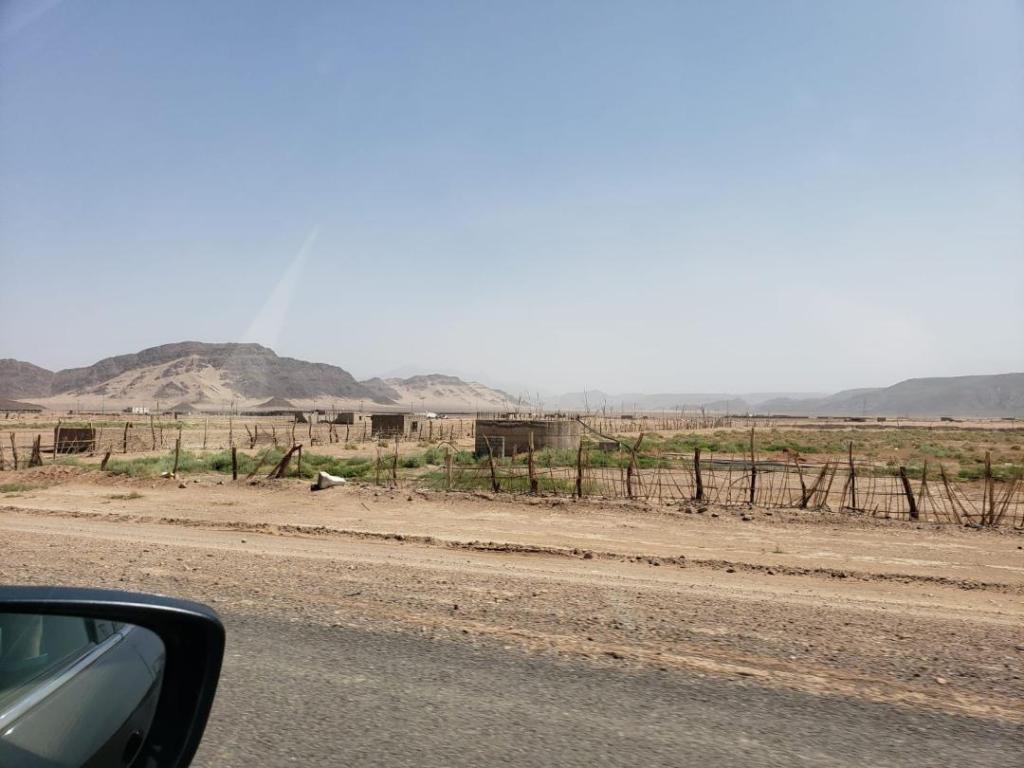 How you know you are close to arriving: Eventually you will come to signs that say “Al Ula” one way and “Madinah” the other. That is the only direction you follow. Before this you will see little town names listed, Yanbu, Tabuk and other cities. You know you are close to Al Ula when you only see AlUla and Medina directions, and will see palm farms, more green areas, small farms and the rocks will be an orange color. Finally you will turn left and be driving into Al Ula. Currently there is some building going on at the outskirts of town. Looks like maybe a shopping area, or welcome area, etc. You take a right, and this road will bring you right into and through town. You will notice new villas under construction, some hole-in-the-wall restaurants, bukhari (chicken and rice) places and some rental car offices.