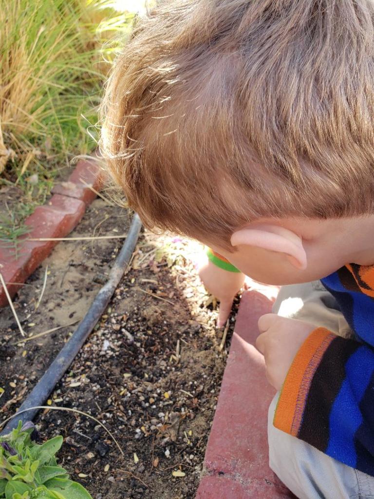 Kids have so much to learn from planting and growing! Keeps them curious! Having your kids involved with you in taking care of “their” plants, gives them an opportunity to own something. If the plants look wilted, my son goes and gets the hose to water the thirsty plants. He notices “his” plants more often than the others, and is really interested to see if he can get some corn. Just today he said, “mom, is that the corn?”, meaning the pollen sprouting out of the top. Since he loves to eat corn, he is eagerly awaiting the harvest!