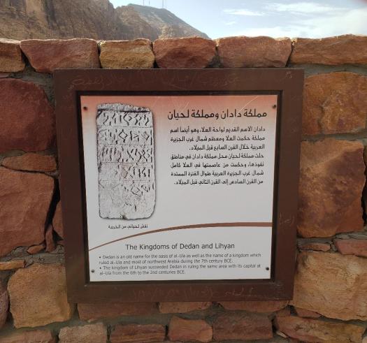 “The Kingdoms of Dedan and Lihyan: Dedan is an old name for the oasis of al-Ula as well as the name of a kingdom which ruled al-Ula and much of northwest Arabia during the 7th century BCE. The kingdom of Lihyan succeeded Dedan in ruling the same area with its capital at al-Ula from the 6th (or 4th?) to the 2nd centuries BCE.”