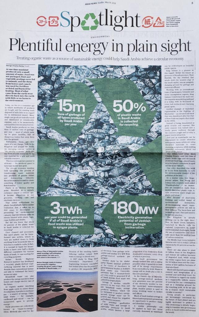 This article appeared this week in Arab News. “Organic waste offers Saudi Arabia a plentiful and sustainable resource”, written by George Charles Darley, 15 May 2021. Below are excerpts from the article, with link to the online article following.