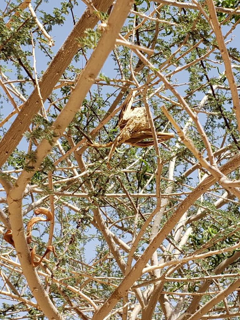 Personal story: As we were following one another on the path towards the inscriptions, I spied what looked like a dried palm frond in a tree that grew along the path. It had a odd shape and I made a mental note to check it out further when we would be returning. Along with our tour guide, whose name I wish I could remember as he was really so good, there were other guides with our group. One of the young Saudi guides said it was hot for him too, and he was there until the end of March when his job finished. Well we were talking on the way back and I stopped at the tree again and looked up into it, and sure enough, you can recognize a wing shape, finger/toes of a desert-dried bat. It must have died and got stuck up in the tree where it still hangs. I showed the guide and from his reaction, it must have been one of the more horrible things he has seen in awhile. Not so fun for him if he doesn’t like bats, etc., as he has to pass it every day in his work. Some things that one person finds interesting may not be so great for others! What was kind of nice to know is that bats apparently inhabit this area.
