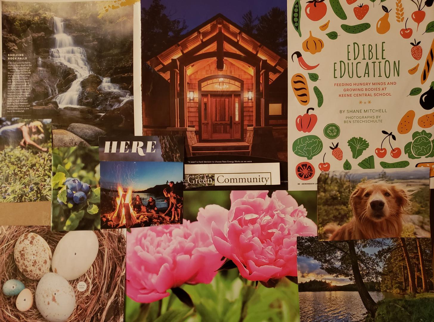 I started this project by cutting out images I liked from calendars and magazines. I collected them for 2 days and then today I put them where they looked best. Viola! I had only outdoorsy kind of magazines, so there won't be a lot of fitness pictures, however this covers my desires for my life …